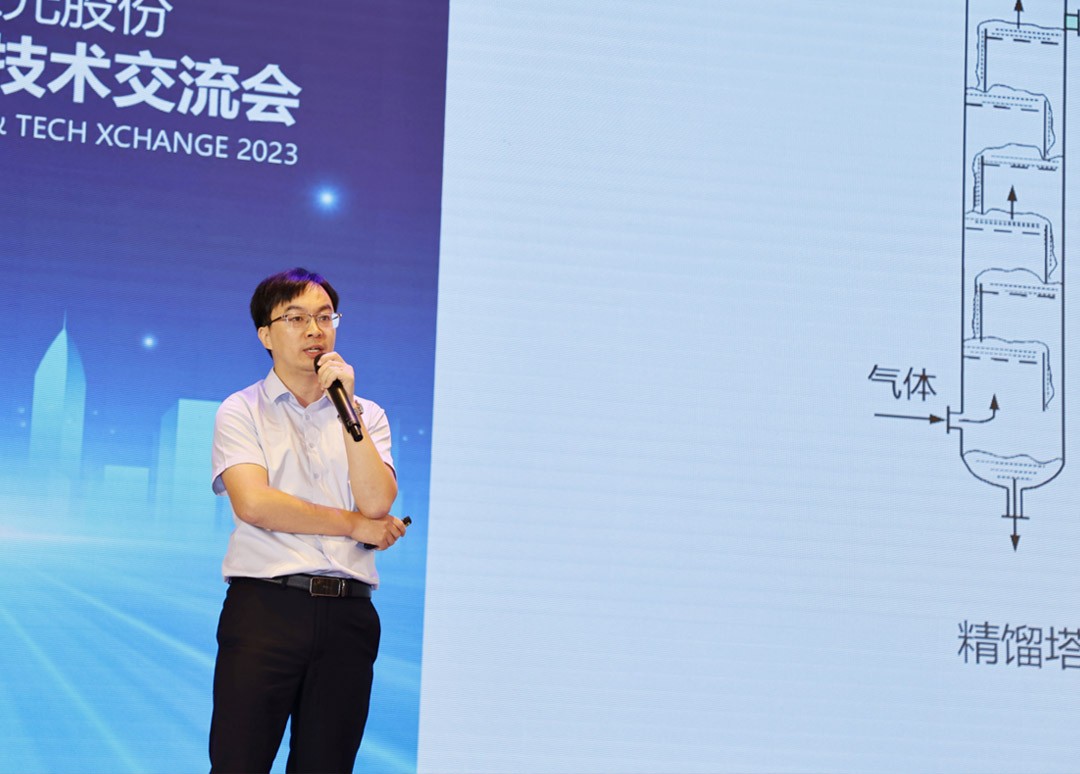 在主题演讲环节中,ag凯发k8国际科技技术部经理蒋晓霄为大家带来了超重力精馏及热泵节能技术讲解。热泵精馏系统以ag凯发k8国际超重力精馏床为基础,结合旗下子公司乐恒MVR蒸汽再压缩技术,为客户提供定制化的高效热泵节能技术方案,有效解决了传统精馏能耗高的缺点,并具有分离效果好、节能优势明显等优点。