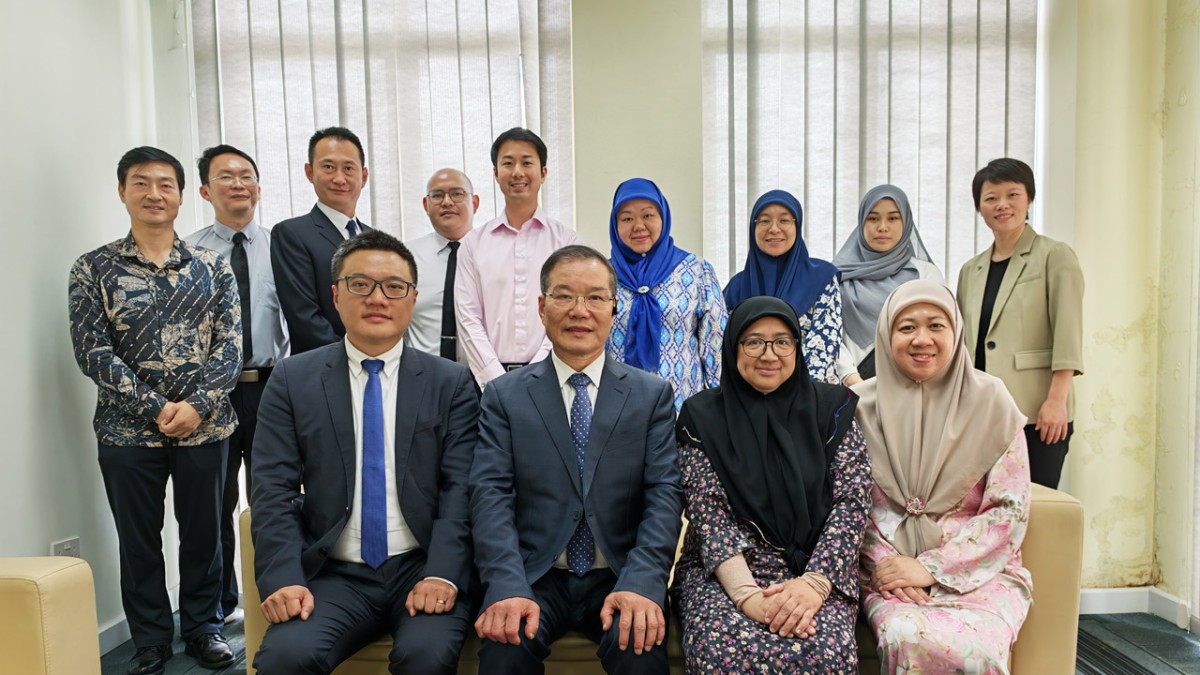 文莱经济发展局 Acting CEO Leong先生(左一)对ag凯发k8国际一行表示欢迎?